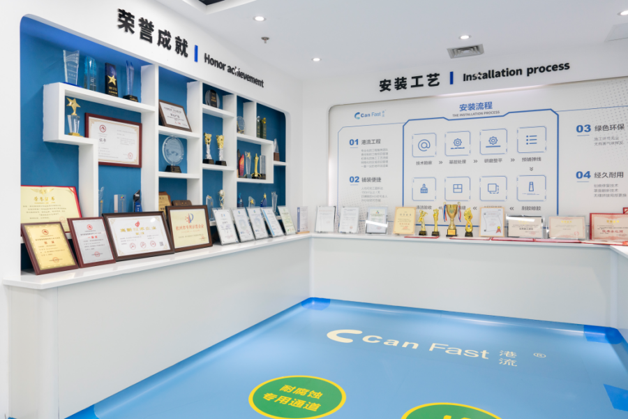 港流科技預(yù)制圓弧角的出現(xiàn),突破了以往傳統(tǒng)的陰陽角安裝工藝,讓鋪裝效果更上一層樓。