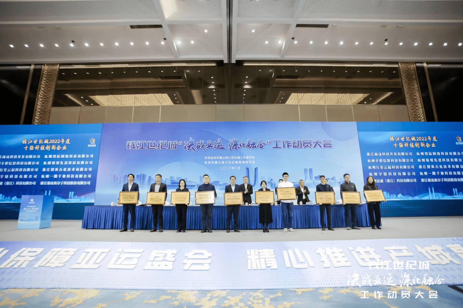 2023年2月20日下午,錢江世紀城“決戰亞運,深化融合”工作動員大會在杭州國際博覽中心二樓新聞發布廳舉行。港流科技榮獲錢江世紀城2022年度“十強科技創新企業”稱號。